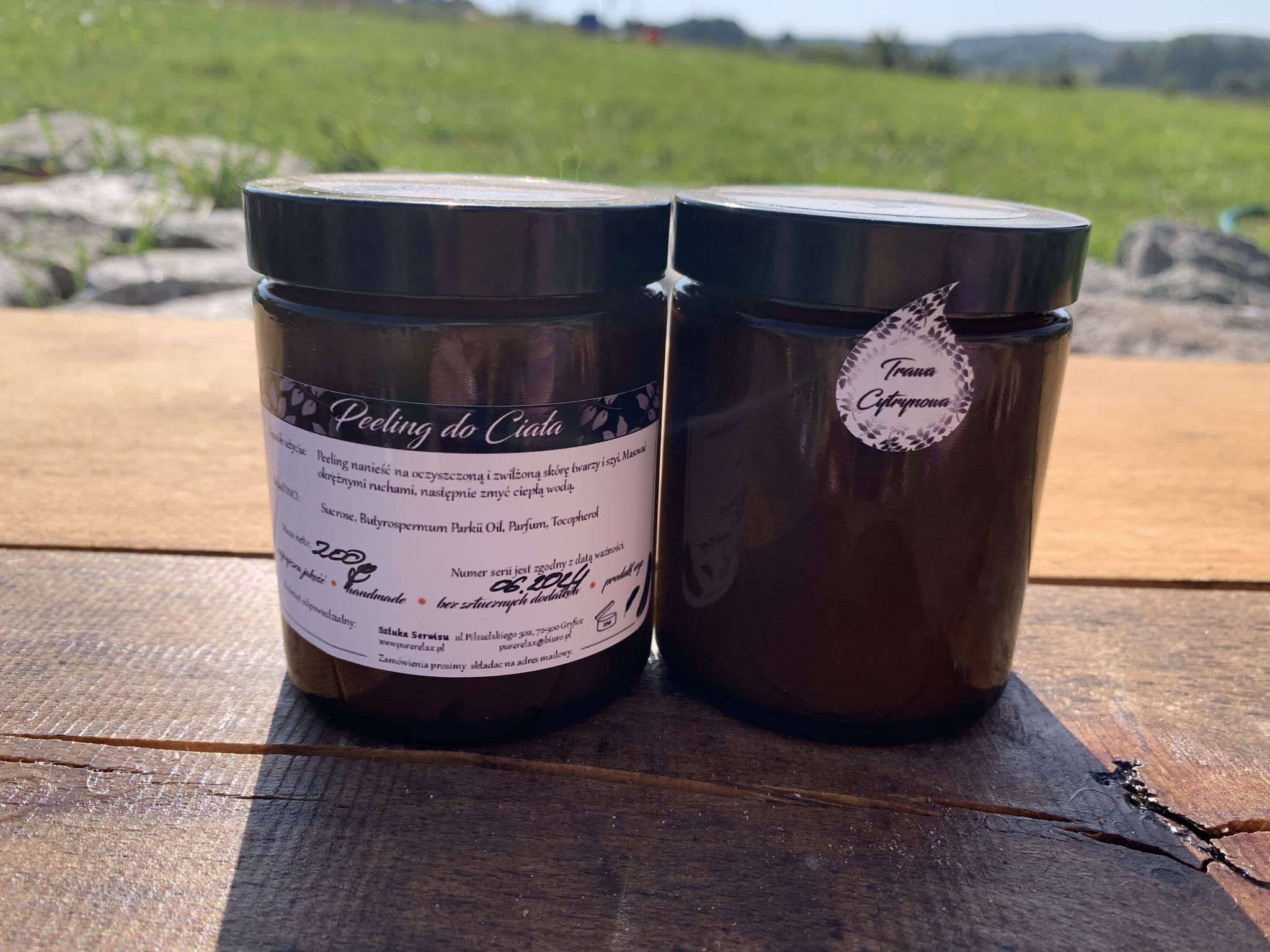 Cukrowy peeling do ciała z masłem shea. Tylko dwa składniki. Wystarczy umyć się wykonując delikatny masaż aby kryształki cukru się rozpuściły. Po spłukaniu skóra pozostaje aksamitna i nawilżona nie potrzeba niczym dodatkowo się smarować.